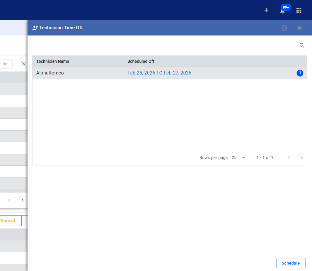 - In the App Launcher (nine-dot menu), go to the CRM tab and select Technician Time Off.