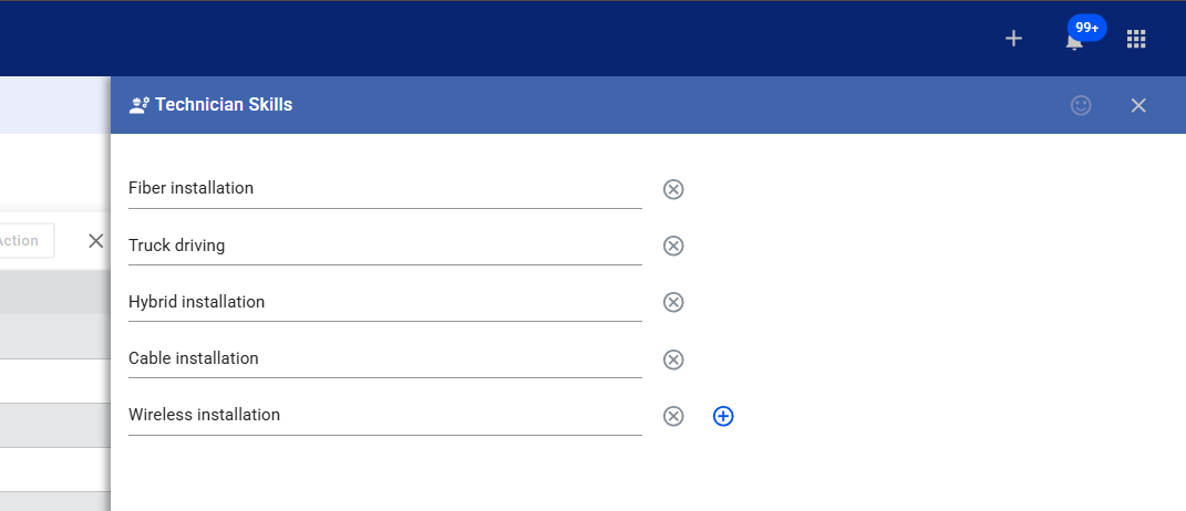 - Click the first empty line to add a skill (e.g., “Fiber Installation”).